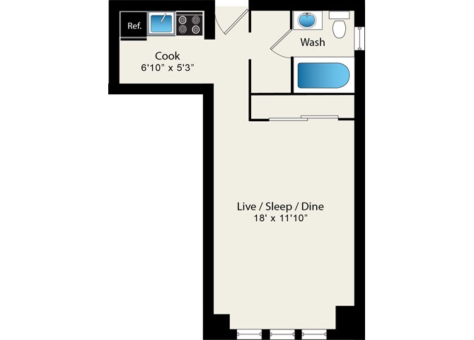 Modelo de apartamento: S3Estudio, 1 Baño, 352 sq ftDisponible Ahora![]()