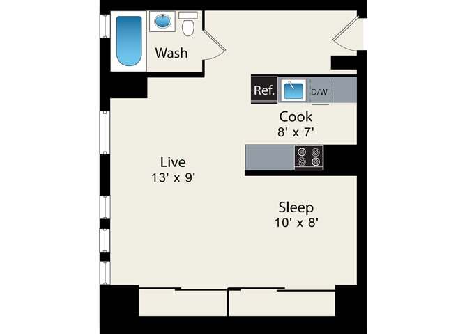 Modelo de apartamento: SC2Estudio, 1 Baño, 479 sq ftDisponible Ahora![]()