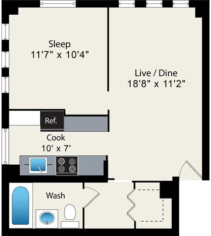 Modelo de apartamento: SC1Estudio, 1 Baño, 478 sq ftDisponible Ahora![]()