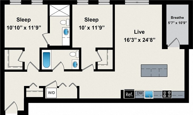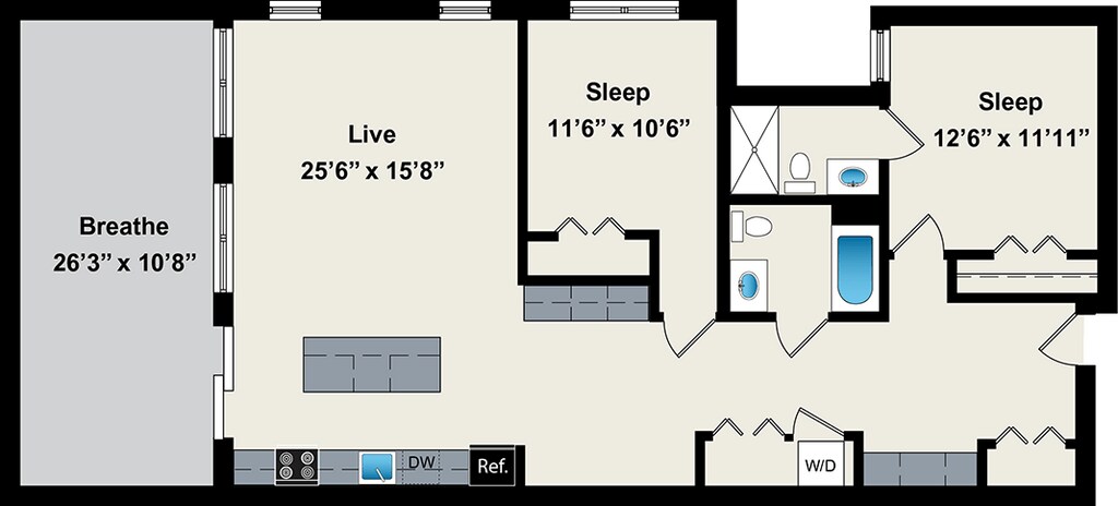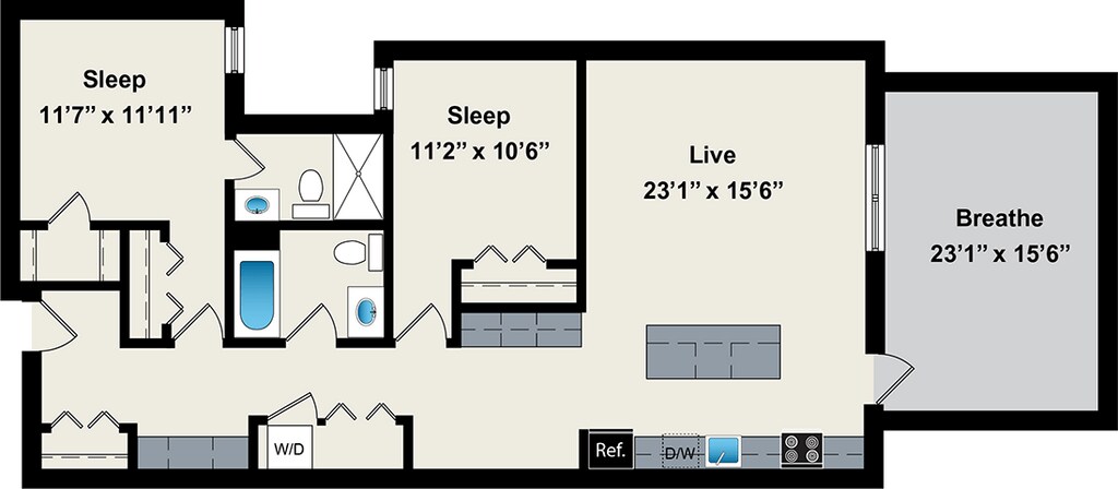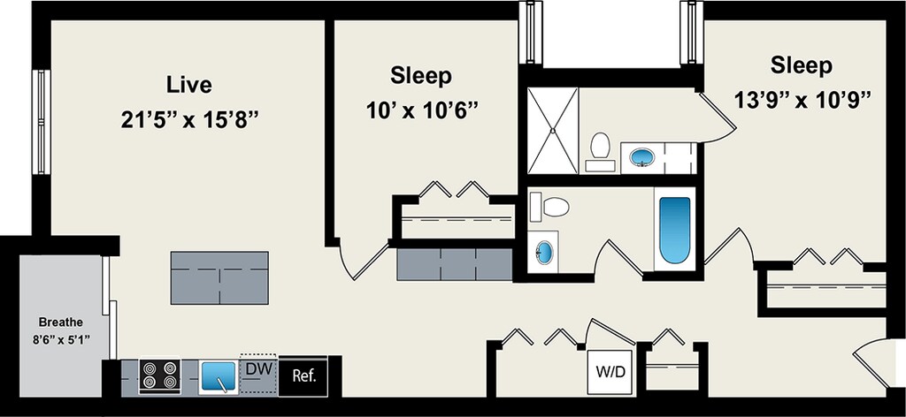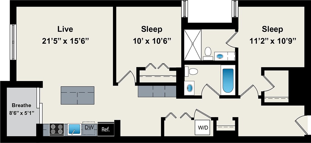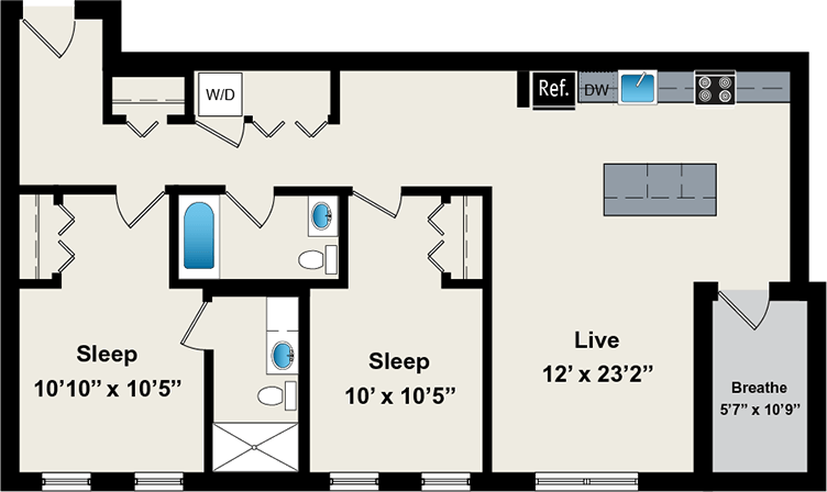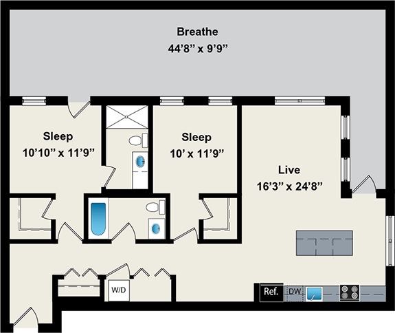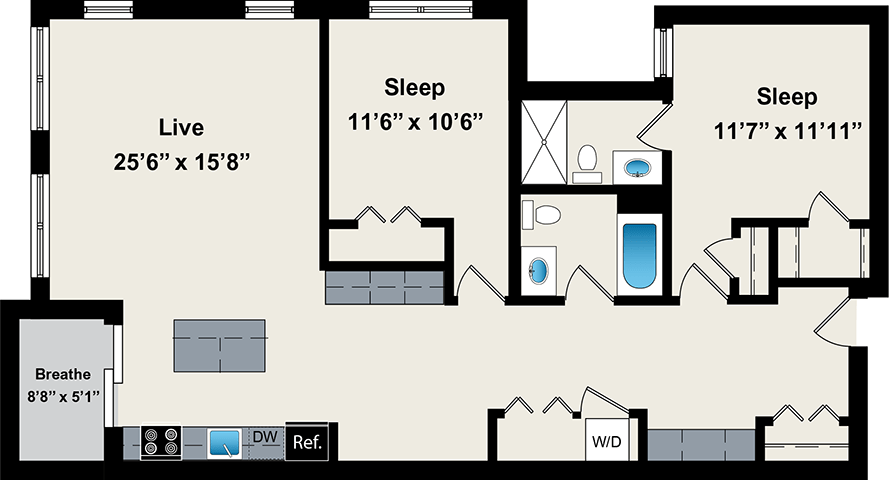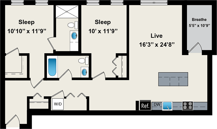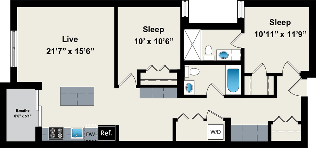 1 Dormitorio, 1 Baño, 800 pies²Disponible AhoraGalería del Modelo