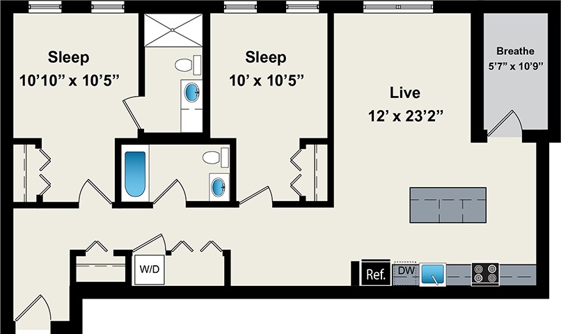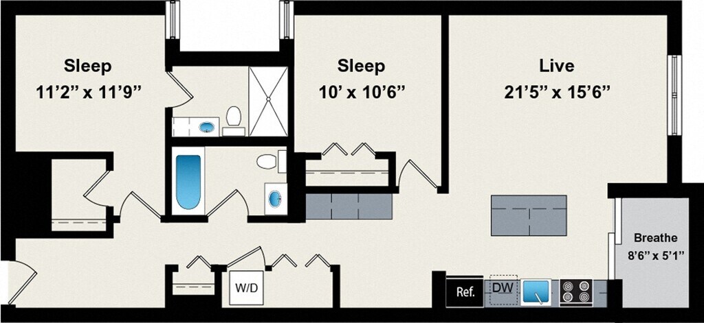 Modelo de apartamento: B192 Dormitorios, 2 Baños, 1022 sq ftDisponible Ahora![]()