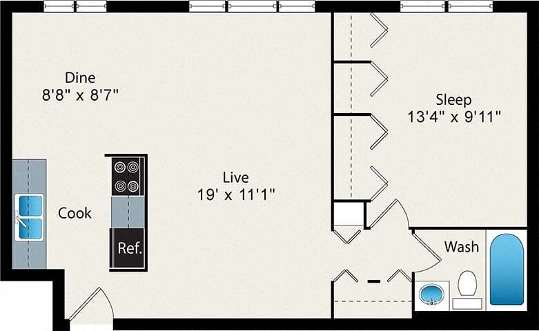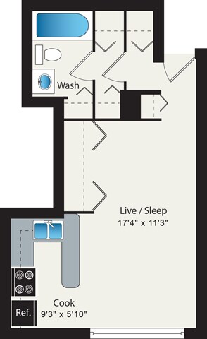 Modelo de apartamento: S5Estudio, 1 Baño, 390 sq ftNo Disponible![]()