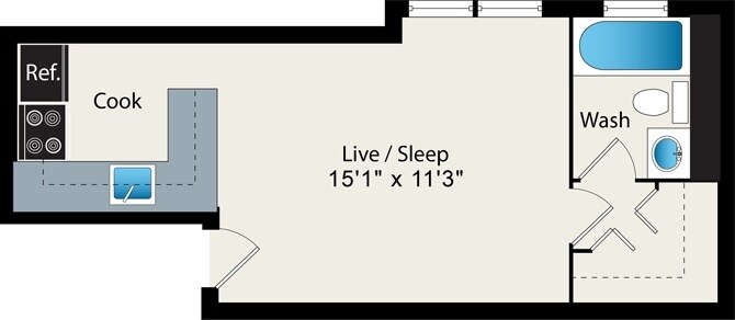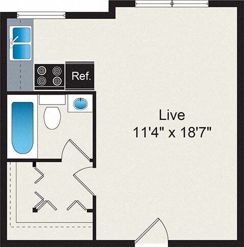 Modelo de apartamento: S2Estudio, 1 Baño, 354-371 sq ftNo Disponible![]()