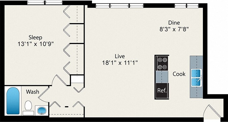 Modelo de apartamento: A91 Dormitorio, 1 Baño, 721 sq ftDisponible December 13, 2025![]()