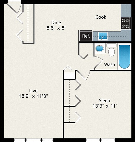Modelo de apartamento: A11 Dormitorio, 1 Baño, 640-647 sq ftNo Disponible![]()