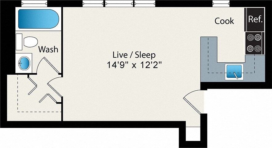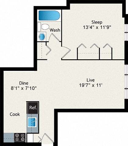 Modelo de apartamento: S1Estudio, 1 Baño, 349 sq ftNo Disponible![]()