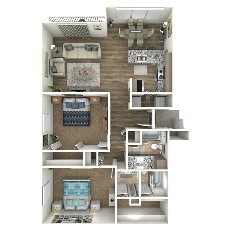 Modelo de apartamento: PelicanDesde $1,1991 Dormitorio, 1 Baño, 715 sq ftDisponible Ahora![]()