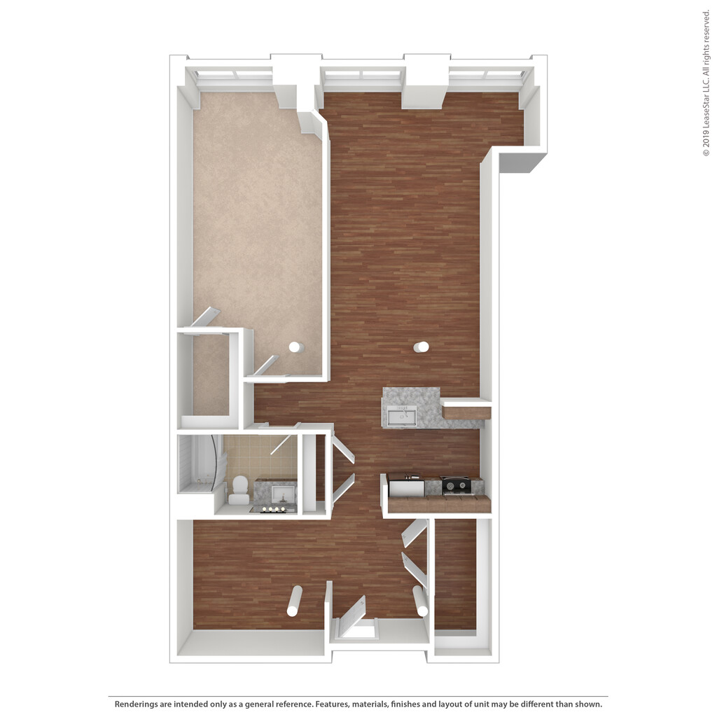 1 Dormitorio, 1 Baño, 816 pies²Galería del Modelo