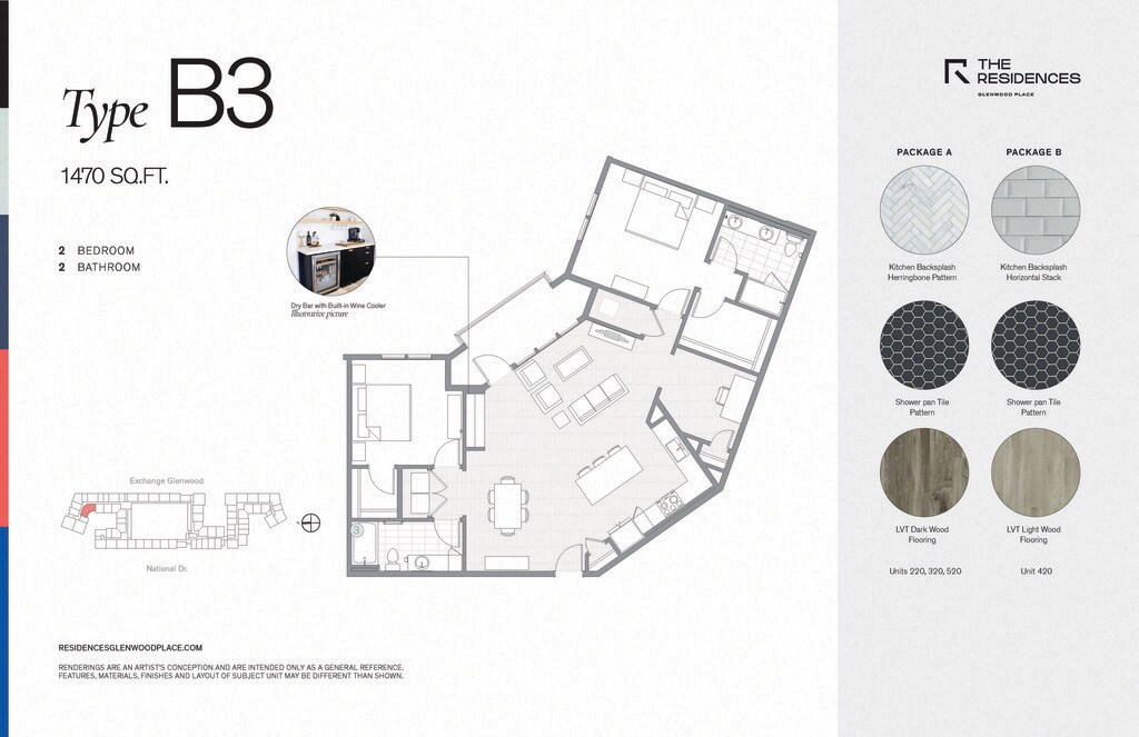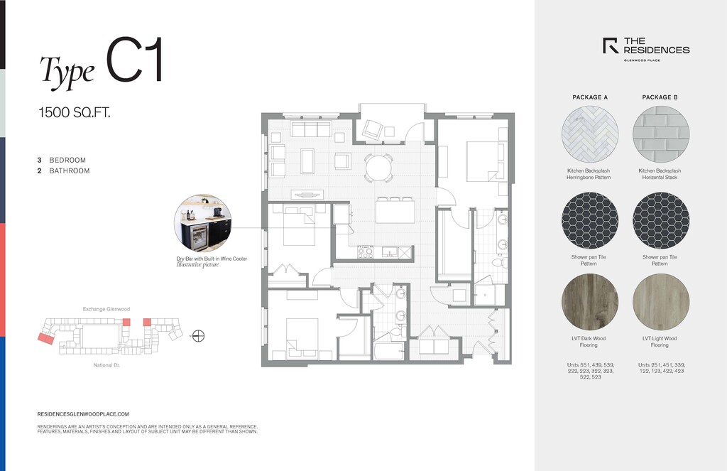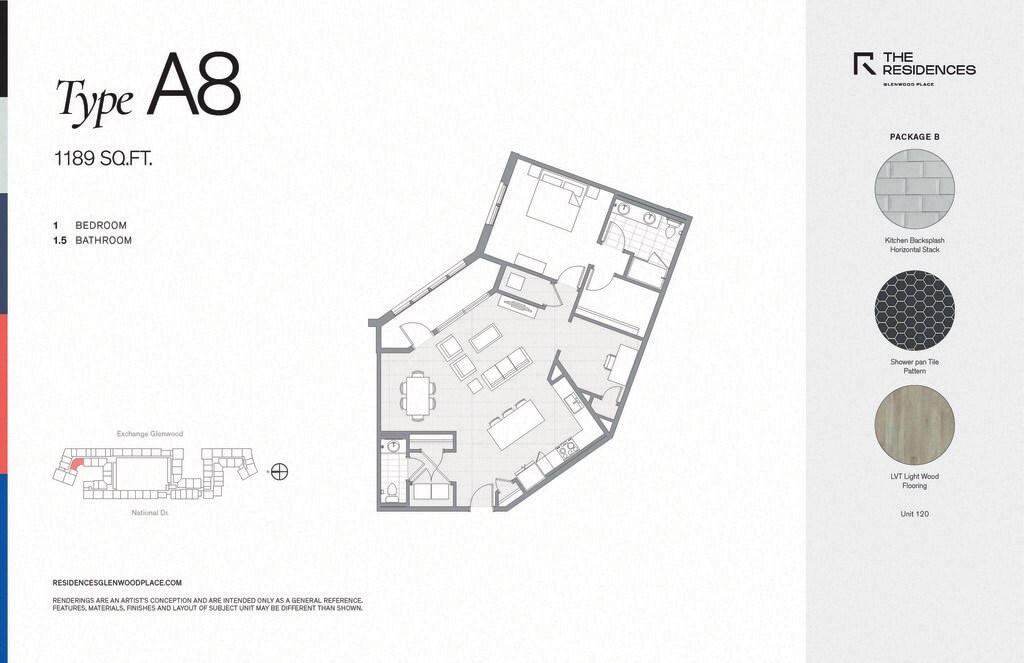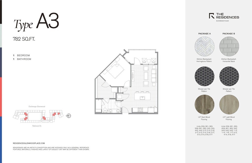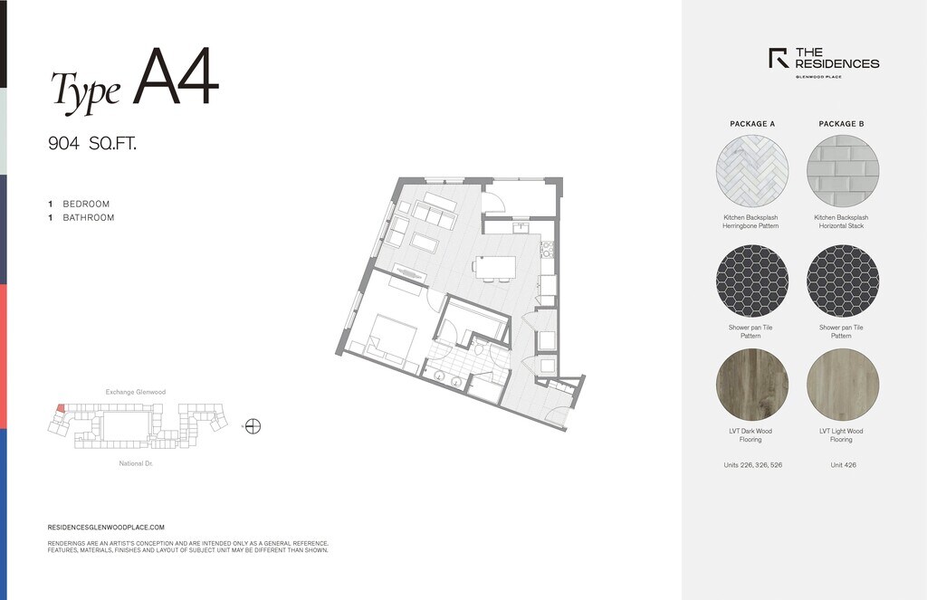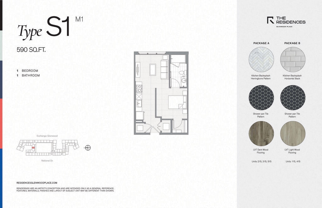 Residences Glenwood Place ofrece apartamentos de Estudio a 3 Dormitorios desde $1,231 con 501–1,792 pies cuadrados. Aquí está el precio actual y la disponibilidad: