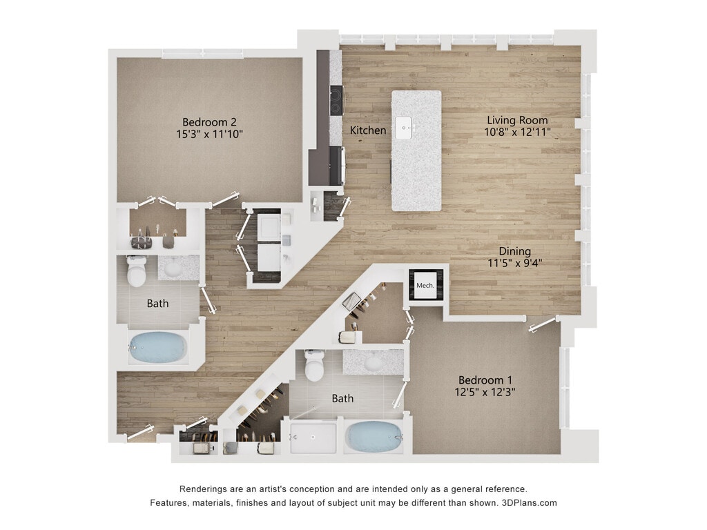 1 Dormitorio, 1 Baño, 753 pies²Disponible AhoraGalería del Modelo