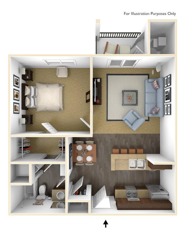 1 Dormitorio, 1 Baño, 775 pies²Disponible March 1, 2026Galería del Modelo