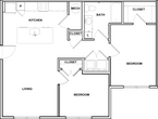 2 Dormitorios, 1 Baño, 859 pies²Galería del Modelo