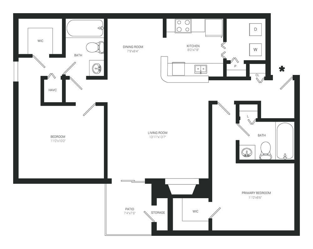 1 Dormitorio, 1 Baño, 870 pies²Precio Mensual TotalDisponible AhoraGalería del Modelo