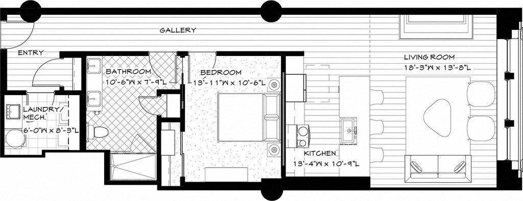 1 Dormitorio, 1 Baño, 1180 pies²Disponible AhoraGalería del Modelo