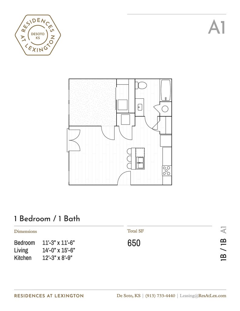 Modelo de apartamento: A11 Dormitorio, 1 Baño, 650 sq ftDisponible February 27, 2026![]()