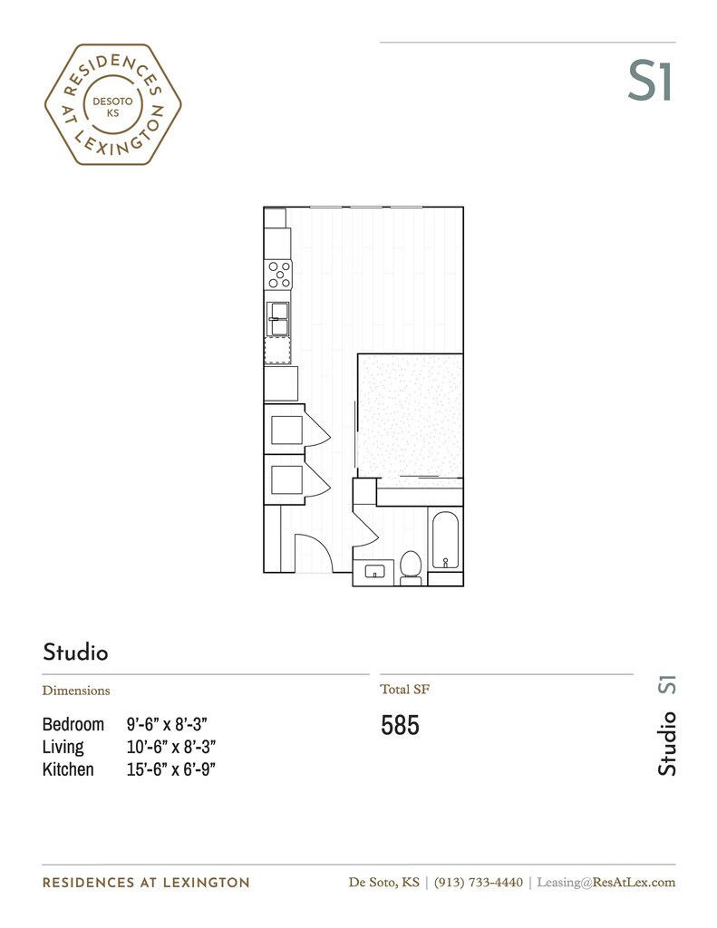 Modelo de apartamento: S1Estudio, 1 Baño, 585 sq ftDisponible June 5, 2026![]()