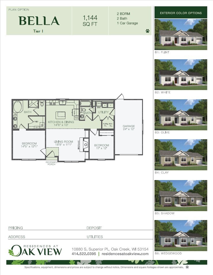 Con 22 casas nuevas adicionales en 2023: este nuevo nivel de casas contará con capacidades de carga de vehículos eléctricos en tu garaje adjunto privado, timbres Ring y termostatos Wi-Fi. Los espacios son limitados. ¡Quedan menos de 5 apartamentos! Nuestro complejo está compuesto por 83 casas unifamiliares que se ofrecen en diseños de 2 y 3 habitaciones. Cada hogar ofrece planos de planta de concepto abierto, garajes adjuntos y precableado para Internet/televisión por cable. Estarás rodeado de lujos modernos, electrodomésticos de acero inoxidable que incluyen una estufa a gas y chimenea, vestidores grandes, techos de 9 pies de altura y mucho espacio de almacenaje para acomodar. ¿Necesitas salir de casa... ? Ven a relajarte en la terraza de la piscina o disfruta de un baño en la piscina a nivel. Mientras la familia nada, cocina el almuerzo en nuestra pérgola con parrillas. Nuestro equipo te brindará un estilo de vida libre de mantenimiento para que no tengas que pasar tiempo trabajando en el jardín o dentro de tu hogar. En su lugar, utiliza tu tiempo para socializar en la casa club del complejo, hacer ejercicio en el gimnasio disponible las 24 horas o relajarte en la hermosa piscina comunitaria. Residences At Oak View está ubicado a solo minutos al sur de Milwaukee en Oak Creek, Wisconsin, en el distrito residencial y tiene una sensación de vecindario suburbano. La propiedad está ubicada a solo 5 minutos en auto de la autopista y de restaurantes locales/centros comerciales. ¡Esperamos conocerte y ayudarte a mudarte a tu nuevo hogar! Ponte en contacto con nuestra oficina de arrendamiento para obtener más información.
