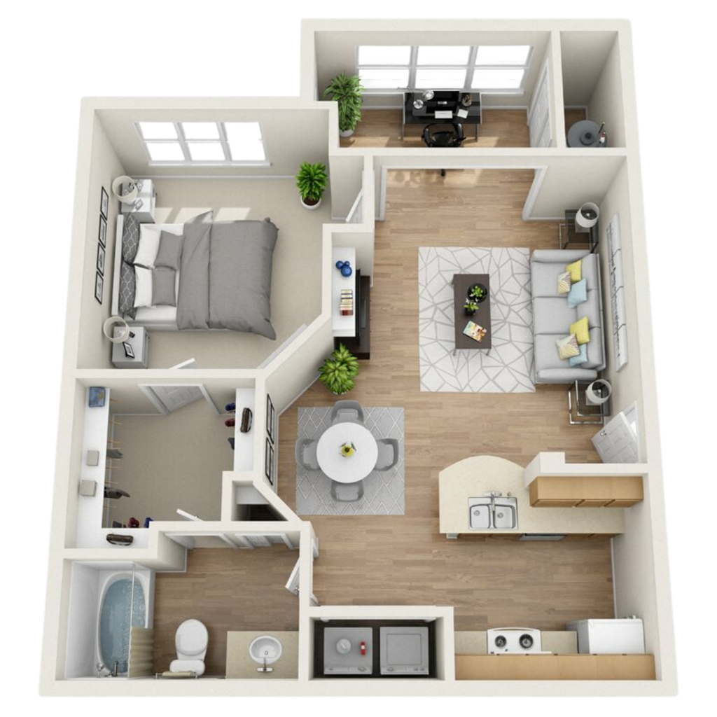 1 Dormitorio, 1 Baño, 721 pies²Disponible AhoraGalería del Modelo