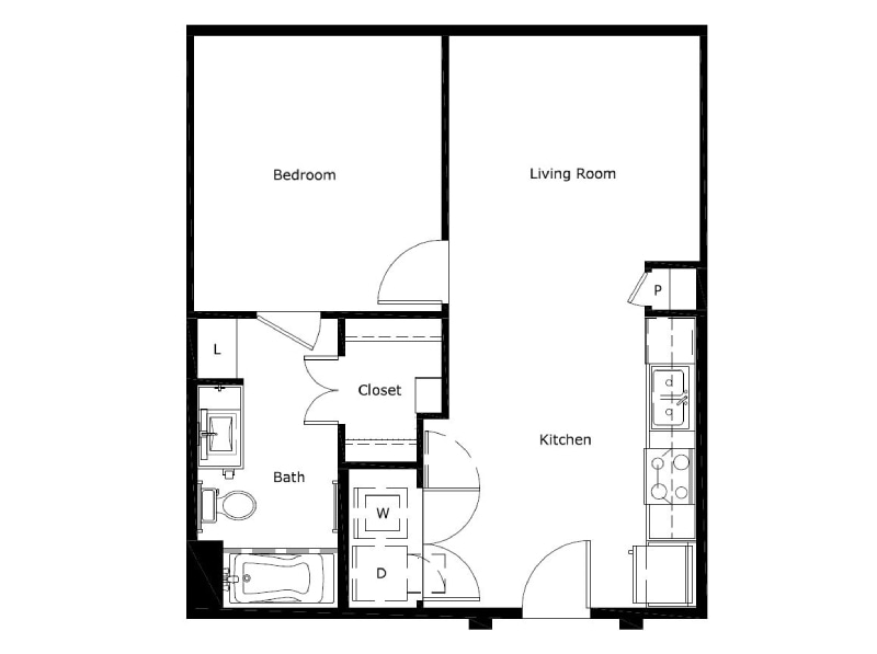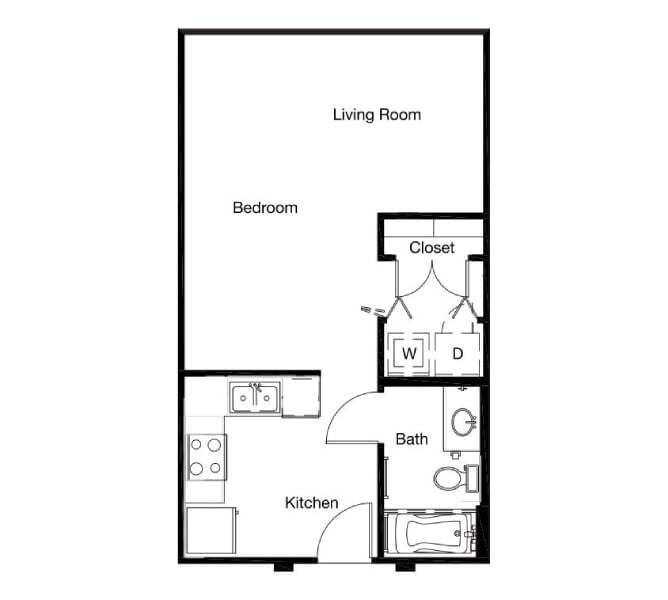 Estudio, 1 Baño, 507-683 pies²Disponible AhoraEl más grandeEsta opción tiene las unidades más grandes para este modeloGalería del Modelo