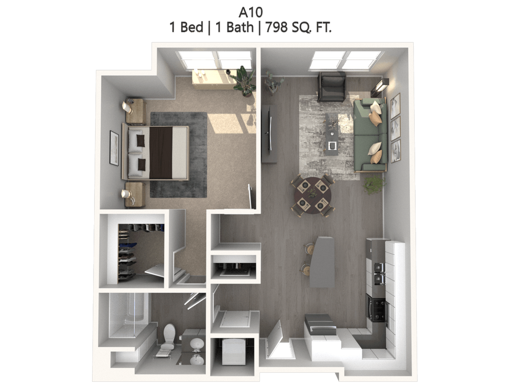1 Dormitorio, 1 Baño, 835 pies²Precio Mensual TotalDisponible May 8Precio Mensual Total