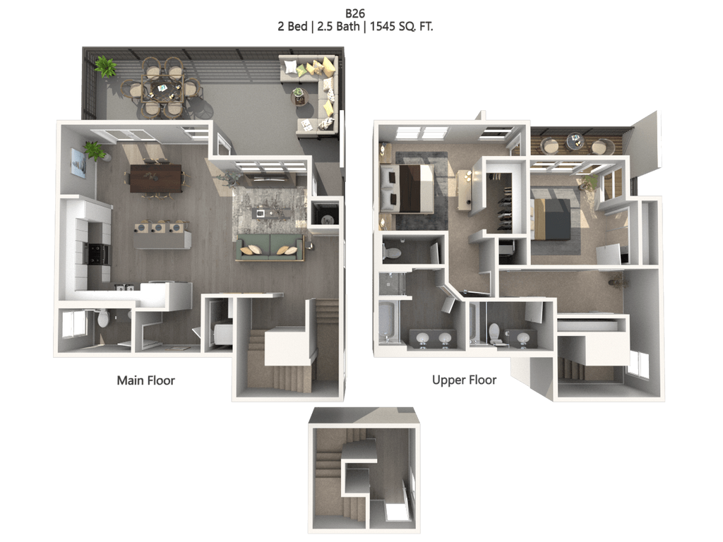 Modelo de apartamento: A26$3,0051 Dormitorio, 1 Baño, 835 sq ftDisponible May 8, 2026Los planos son representaciones artísticas. Todas las dimensiones son aproximadas. El producto y las especificaciones reales pueden variar en tamaño o detalle. No todas las características están disponibles en cada vivienda en alquiler. Por favor, consulta con un representante para obtener más detalles.