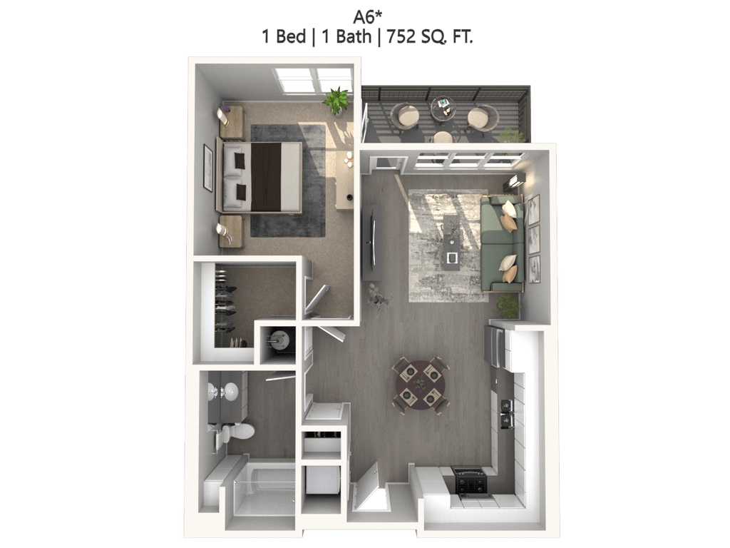 1 Dormitorio, 1 Baño, 663 pies²Precio Mensual TotalDisponible AhoraPrecio Mensual Total