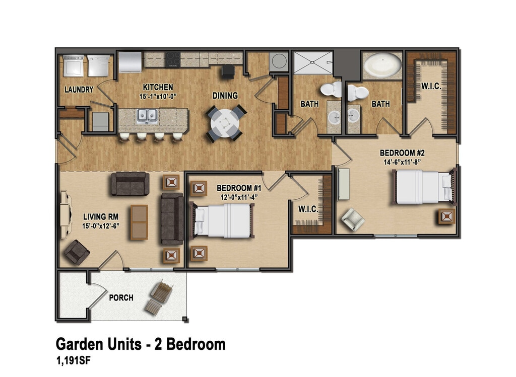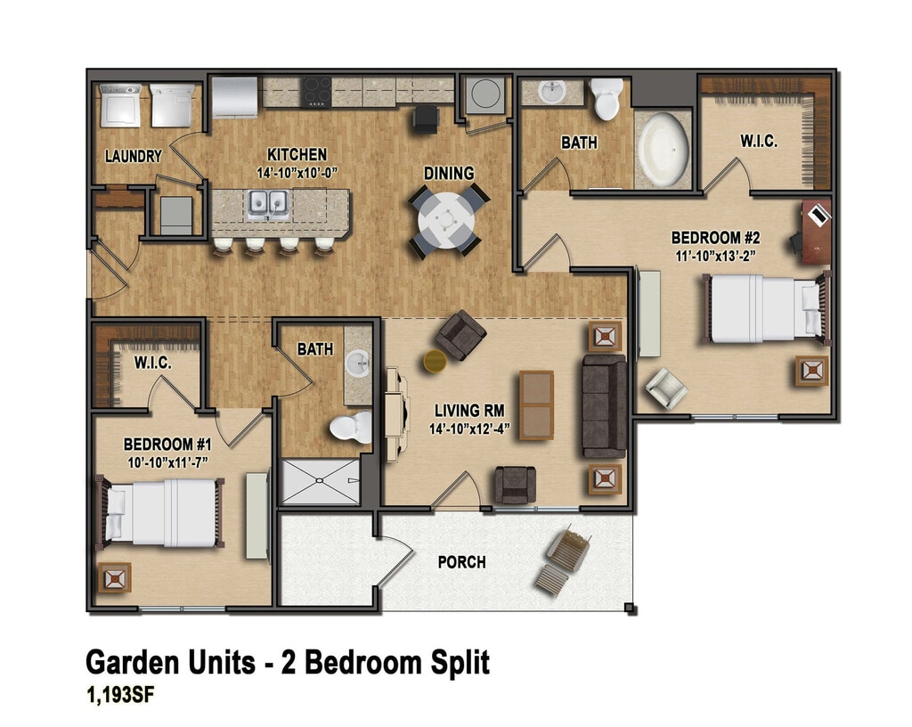 2 Dormitorios, 2 Baños, 1193 pies²Disponible AhoraGalería del Modelo
