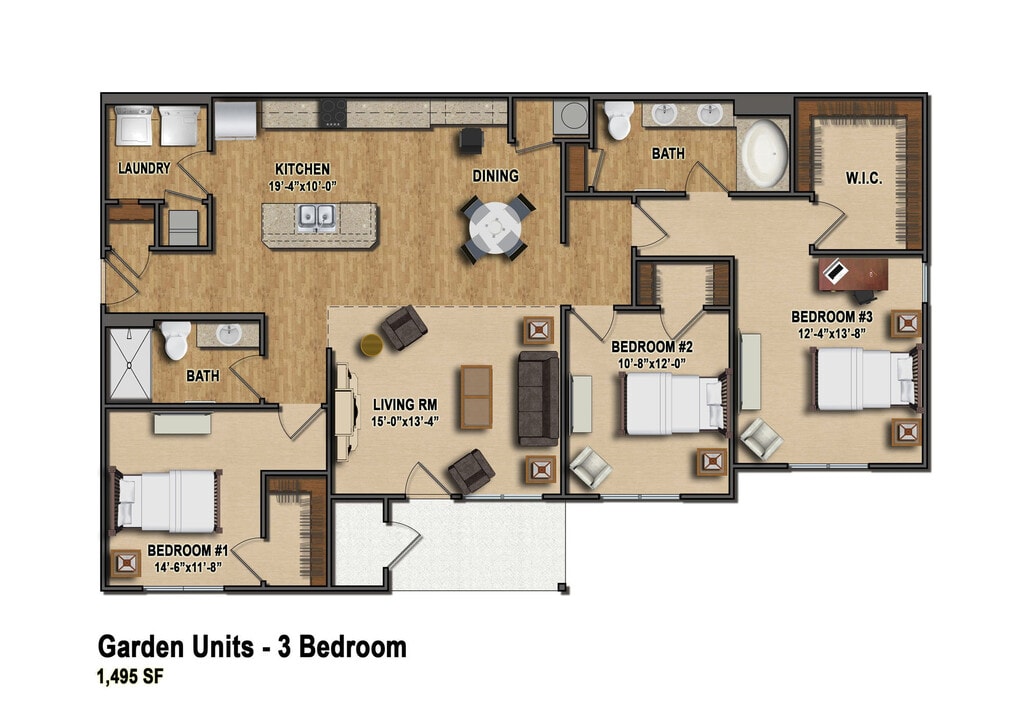 3 Dormitorios, 2 Baños, 1495 pies²Disponible Nov 26Galería del Modelo