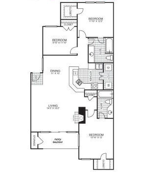 Modelo de apartamento: Cayman-A3Desde $1,3201 Dormitorio, 1 Baño, 708 sq ftDisponible AhoraPlanosFotos![]()