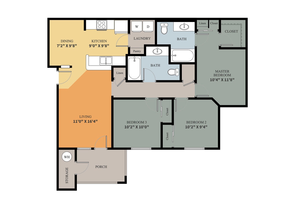 Modelo de apartamento: Three BedroomDesde $5423 Dormitorios, 2 Baños, 1136 sq ftDisponible AhoraPlanosFotos![]()