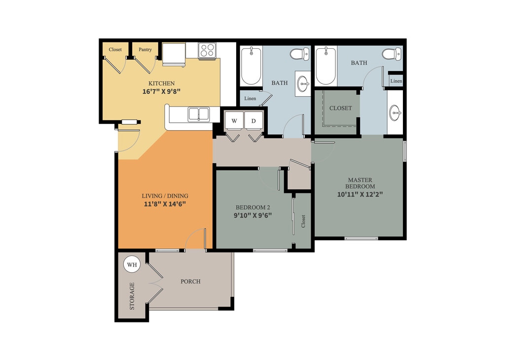 Modelo de apartamento: Two BedroomDesde $4692 Dormitorios, 2 Baños, 950 sq ftDisponible AhoraPlanosFotos![]()