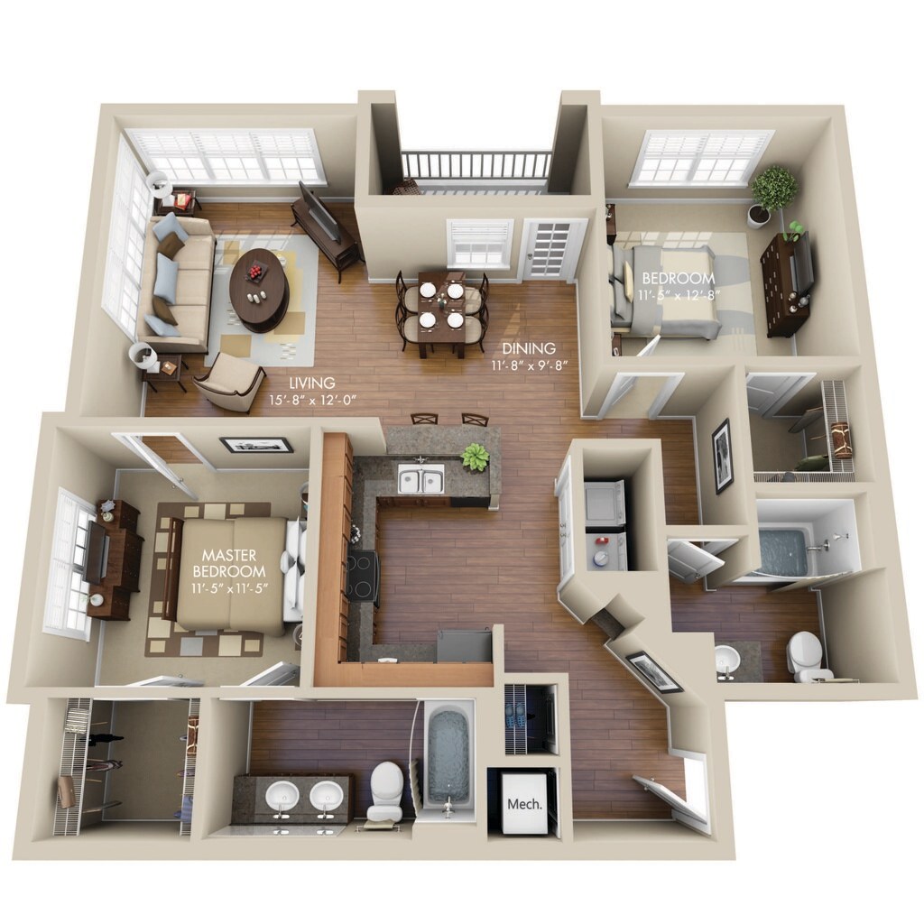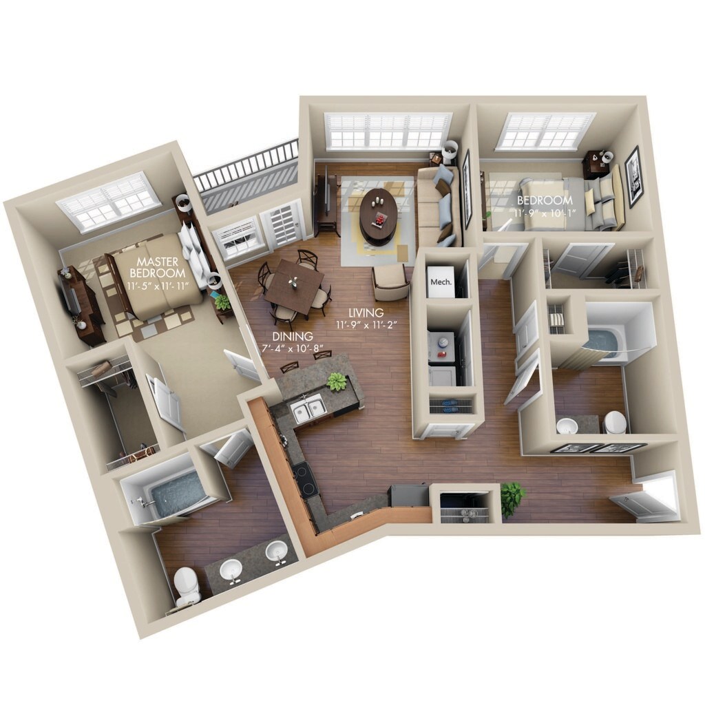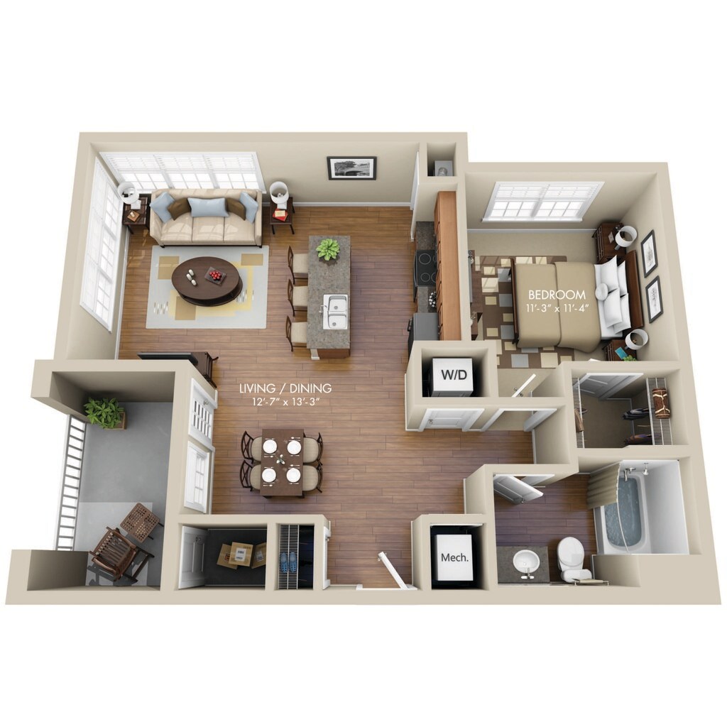 1 Dormitorio, 1 Baño, 847 pies²Disponible AhoraGalería del Modelo