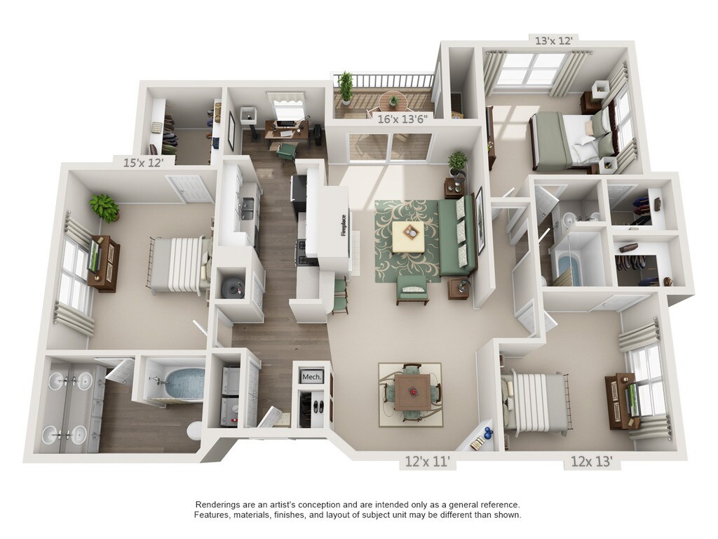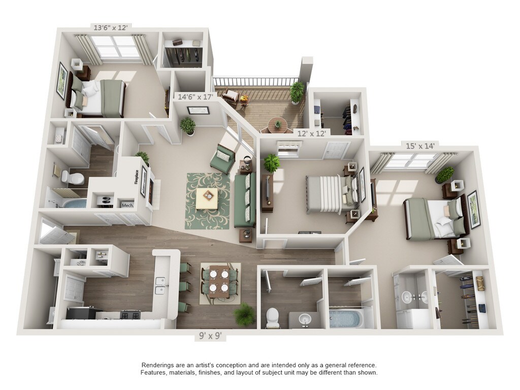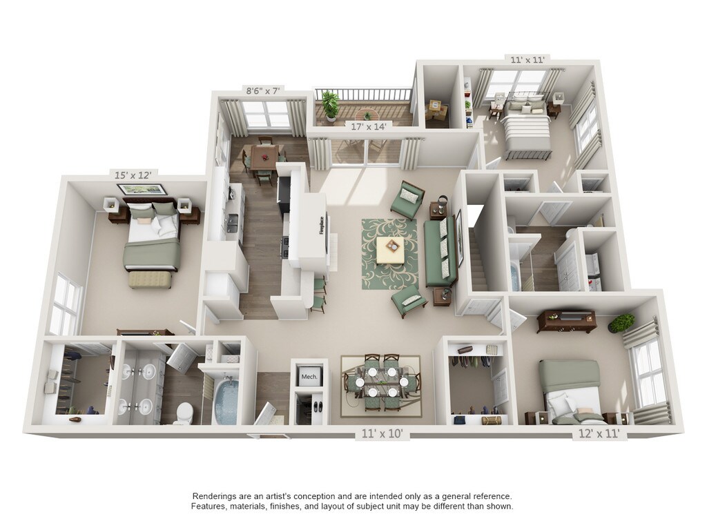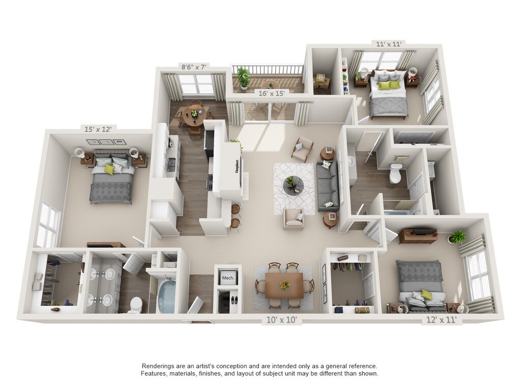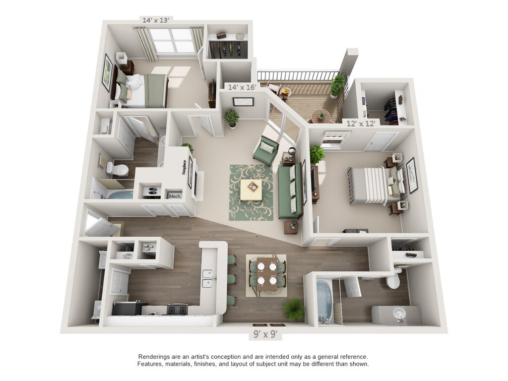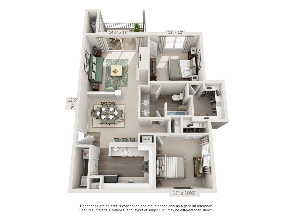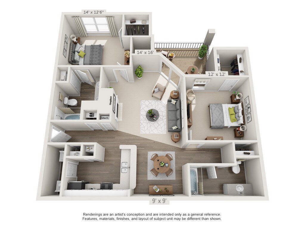 Modelo de apartamento: 1 Bedroom Tennessee Platinum$1,6001 Dormitorio, 1 Baño, 952 sq ftNo Disponible![]()