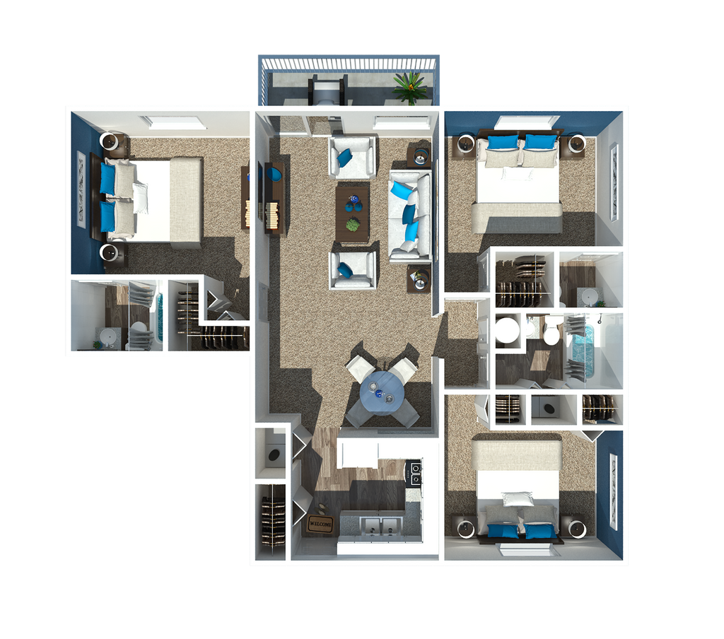 Three Bedroom | Two and a Half Bathroom - Plano 1 Unidad de apartamento: 3373Modelo de apartamento: Three Bedroom | Two and a Half Bathroom$1,8993 Dormitorios, 2.5 Baños, 1190 sq ftDisponible AhoraThree Bedroom | Two Bathroom