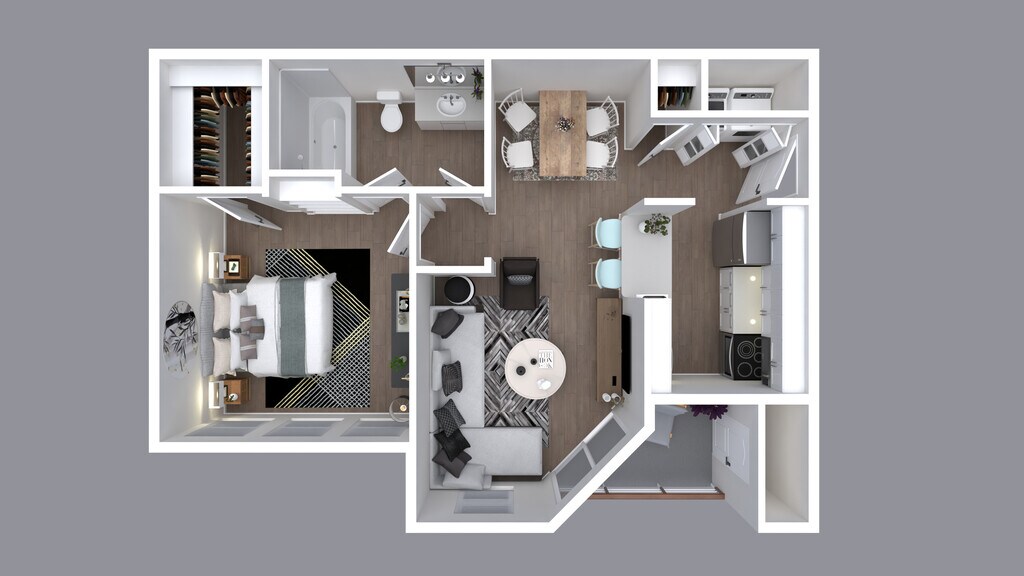 Modelo de apartamento: 1X1-843$1,6221 Dormitorio, 1 Baño, 843 sq ftDisponible April 21, 2026![]()