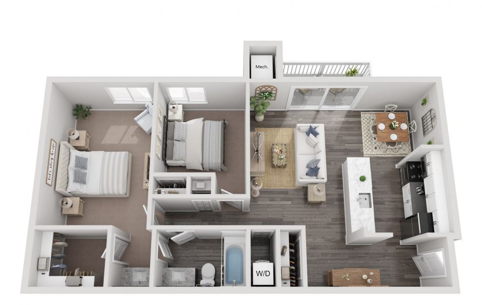 2 Dormitorios, 2 Baños, 960 pies²Disponible AhoraGalería del Modelo