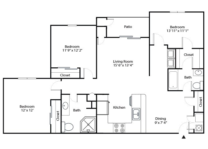 3 Dormitorios, 2 Baños, 1243 pies²Disponible Dec 31Galería del Modelo