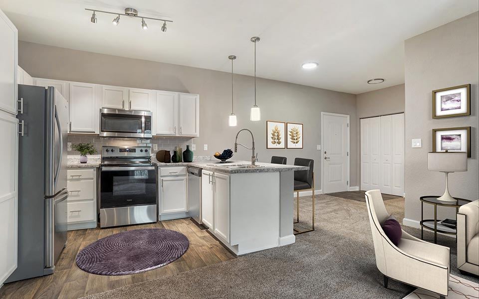 Ofrecemos apartamentos de una, dos y tres habitaciones con todo lo que necesitas para vivir un estilo de vida sin complicaciones: diseños de cocina de concepto abierto, planos de planta con dos suites principales, electrodomésticos Frigidaire de color negro y encimeras estilo granito. Retreat at Schillinger cuenta con algunas de las mejores comodidades, que incluyen un área de piscina y terraza recién rediseñada, gimnasio renovado, un parque para perros y áreas de entretenimiento al aire libre.