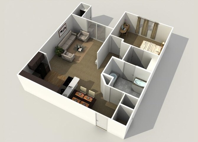 1 Dormitorio, 1 Baño, 801 pies²Disponible AhoraGalería del Modelo