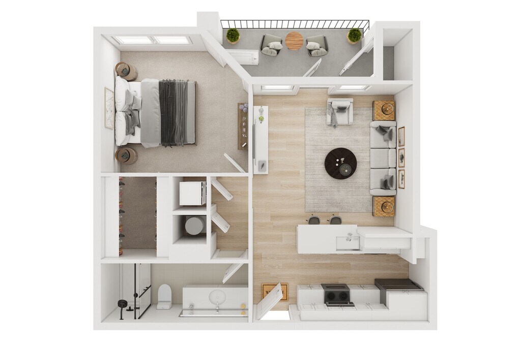 1 Dormitorio, 1 Baño, 767 pies²Disponible AhoraGalería del Modelo