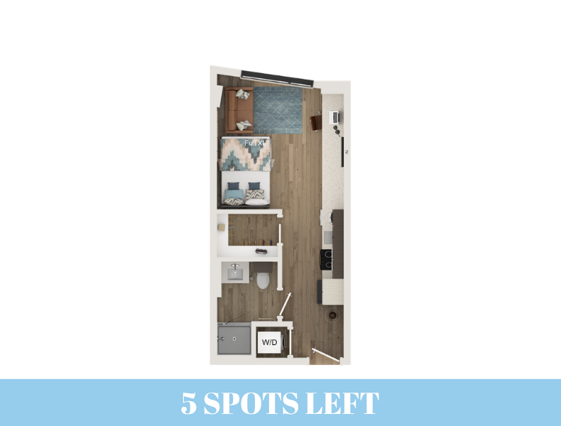 Studio - S1 - Imagen Los planos son representaciones artísticas. Todas las dimensiones son aproximadas. El producto y las especificaciones reales pueden variar en tamaño o detalle. No todas las características están disponibles en cada vivienda en alquiler. Por favor, consulta con un representante para obtener más detalles.