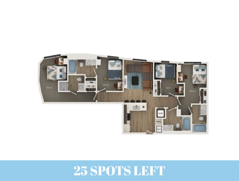 El nuevo rascacielos de Northgate ofrece mejores vistas, amenidades más atrevidas y opciones de vida únicas a la comunidad Aggie. Ahora, alquilar para el otoño de 2023, desde tu lugar en los mejores apartamentos de College Station significa que tendrás tu elección de 19 planos de planta amueblados con opciones de 6 dormitorios que te dan acceso a una habitación privada.