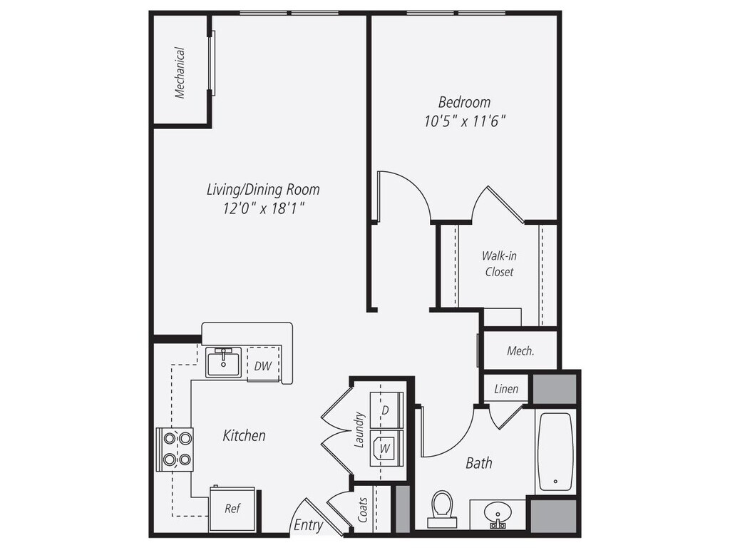Estudio, 1 Baño, 780 pies²El más grandeEsta opción tiene las unidades más grandes para este modeloGalería del Modelo