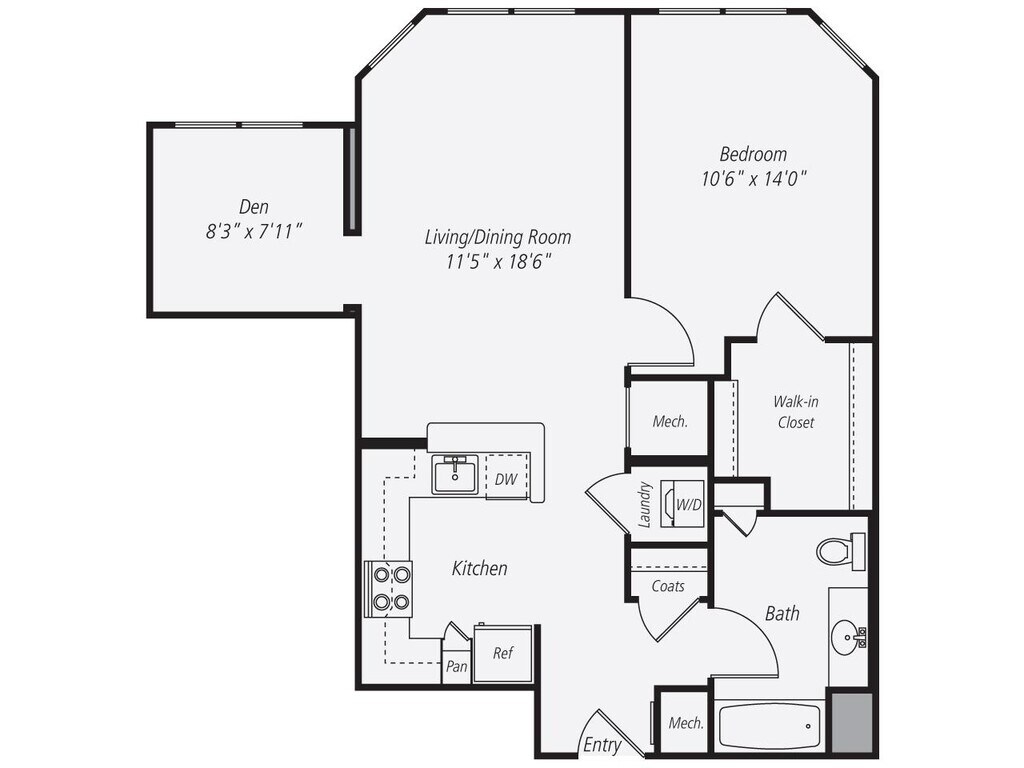 Estudio, 1 Baño, 756 pies²Galería del Modelo