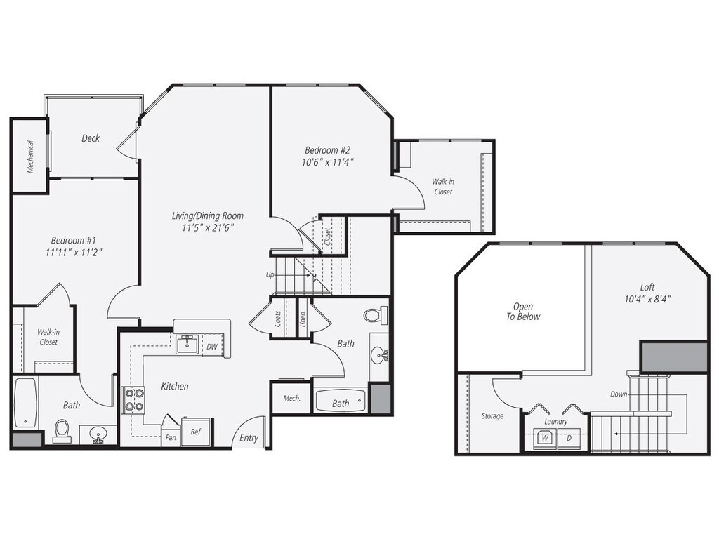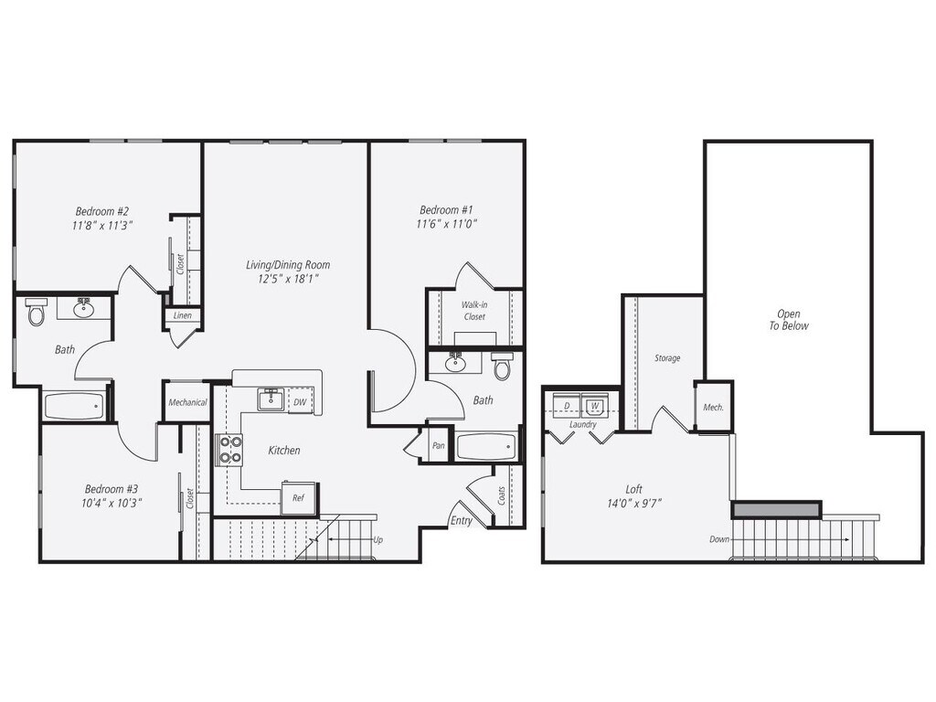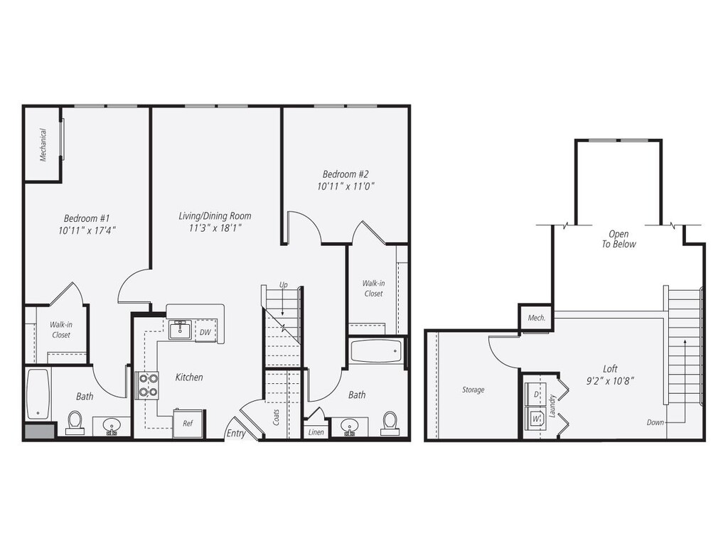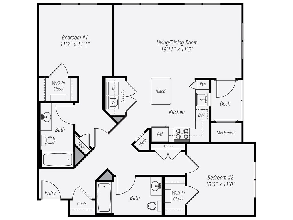 Modelo de apartamento: A2D.3Desde $2,6901 Dormitorio, 1 Baño, 805 sq ftDisponible Ahora![]()