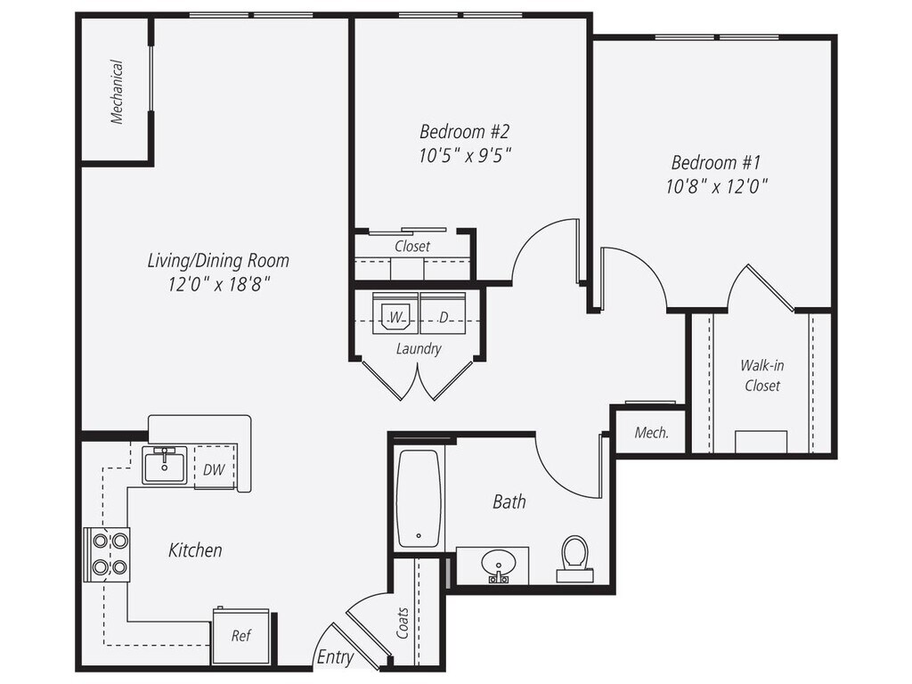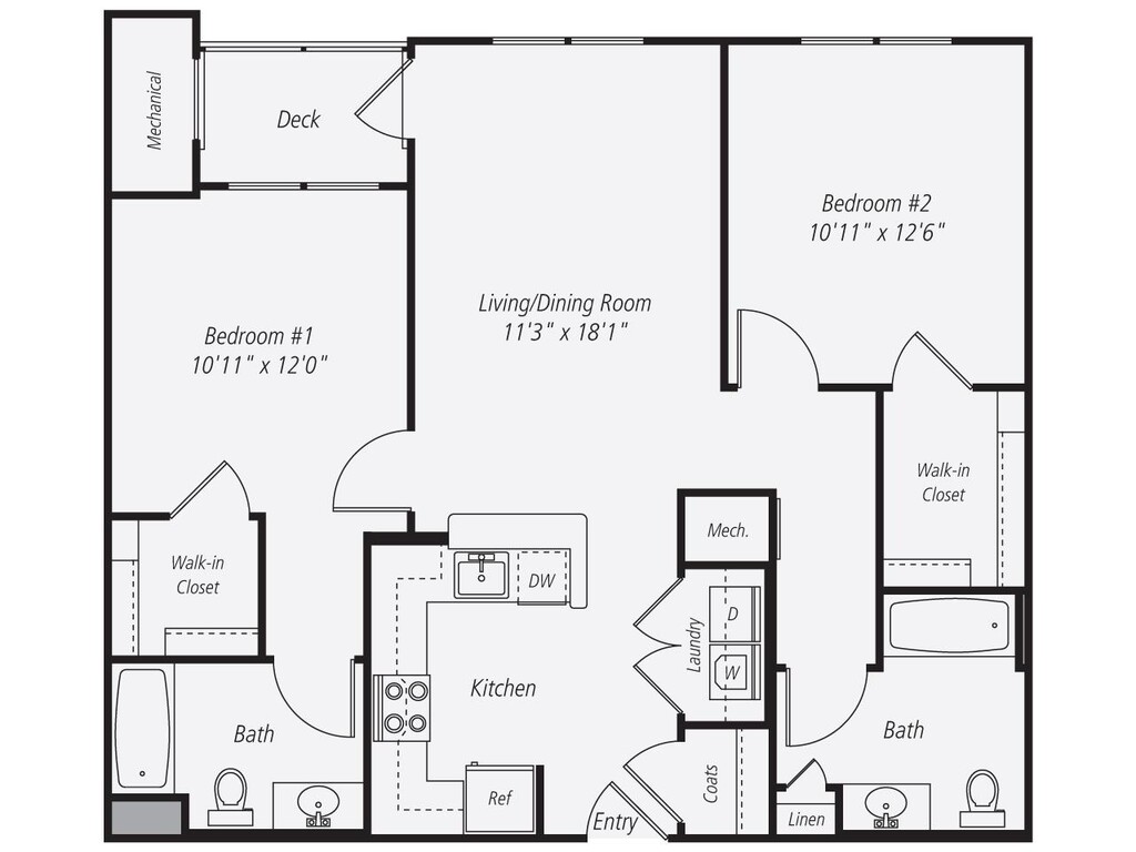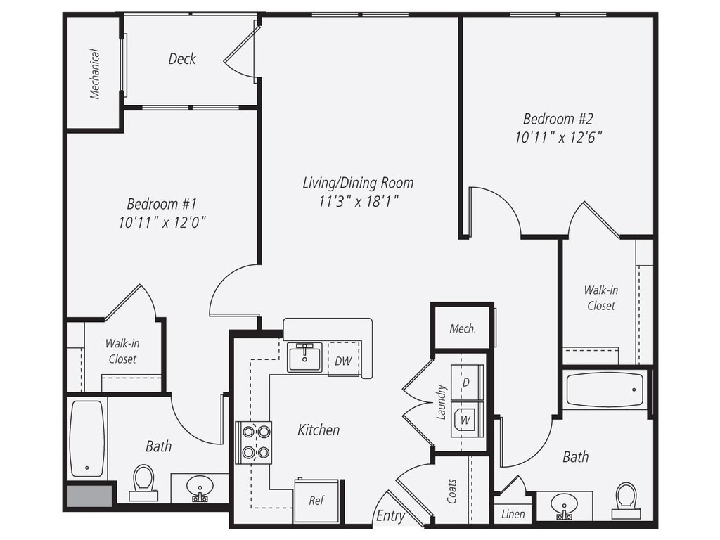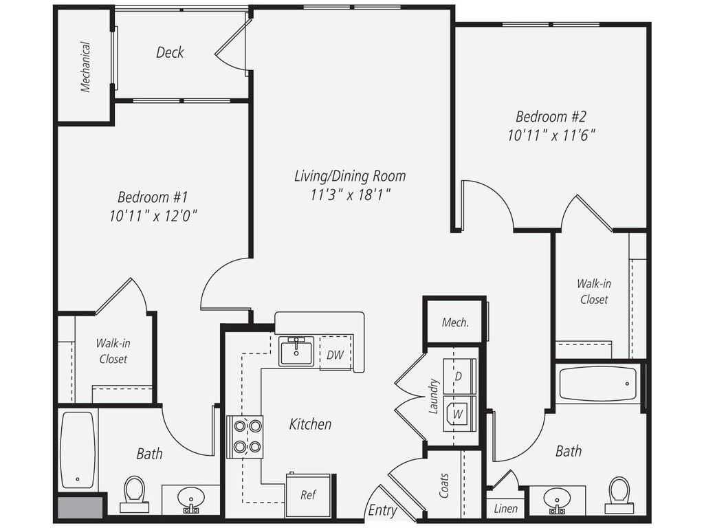Modelo de apartamento: A2D.3Desde $2,6901 Dormitorio, 1 Baño, 805 sq ftDisponible Ahora![]()