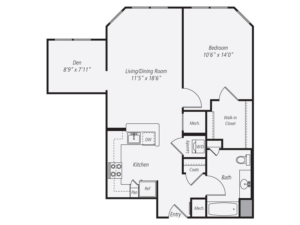 Modelo de apartamento: A2D.5Desde $2,8221 Dormitorio, 1 Baño, 829 sq ftDisponible December 23, 2025![]()