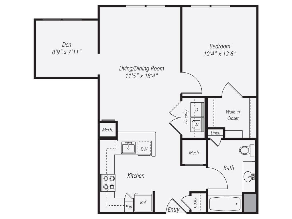 Modelo de apartamento: S3D2L RenovatedLlame para PreciosEstudio, 1 Baño, 780 sq ftNo Disponible![]()