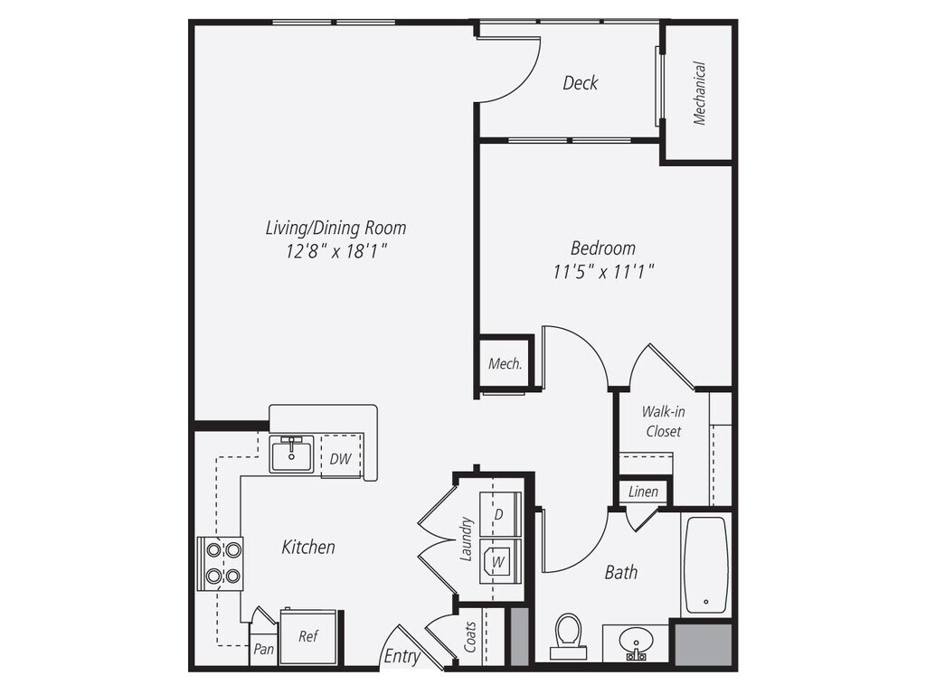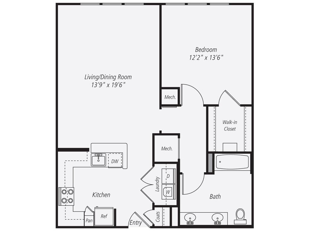 A2D.5 - Plano 1 Unidad de apartamento: 2209Modelo de apartamento: A2D.5$2,8221 Dormitorio, 1 Baño, 829 sq ftDisponible December 23, 2025Plano: A1