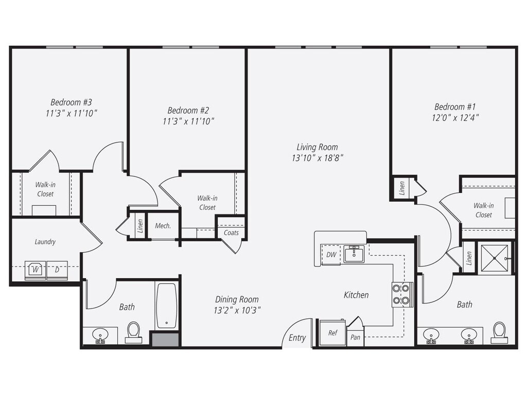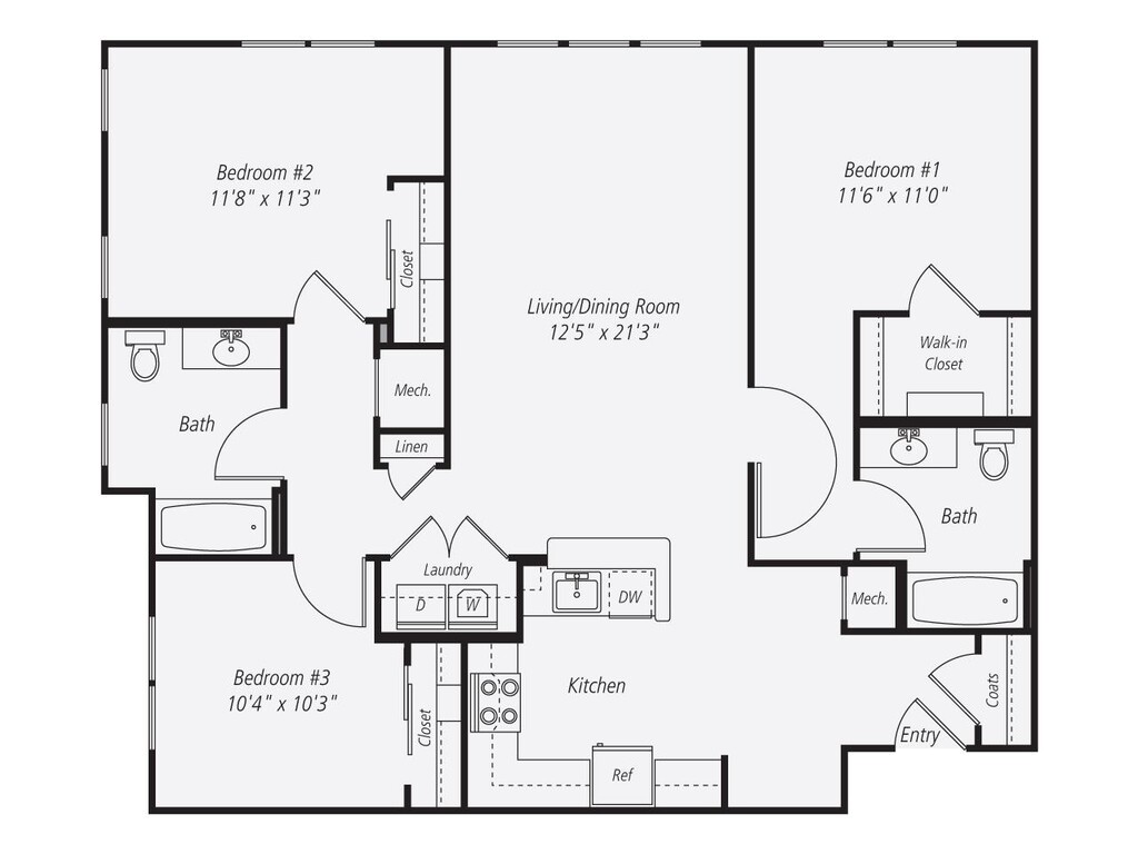 A2D.3 - Plano 1 Unidad de apartamento: 2114Modelo de apartamento: A2D.3$2,6901 Dormitorio, 1 Baño, 805 sq ftDisponible AhoraA2D.5